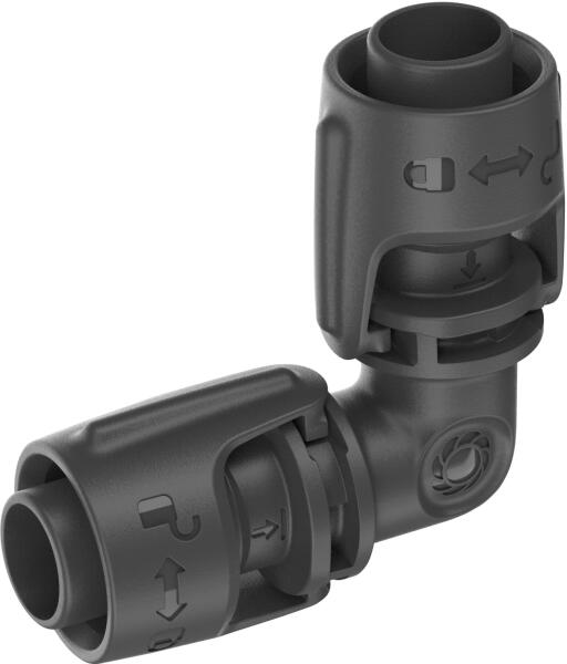 A Flex vezetékcső 13 mm (1/2") és csepegtetőcső 13 mm (1/2") pontos irányváltoztatására. Tartalom: 2 db L-elem. "Quick & Easy" csatlakozórendszer.