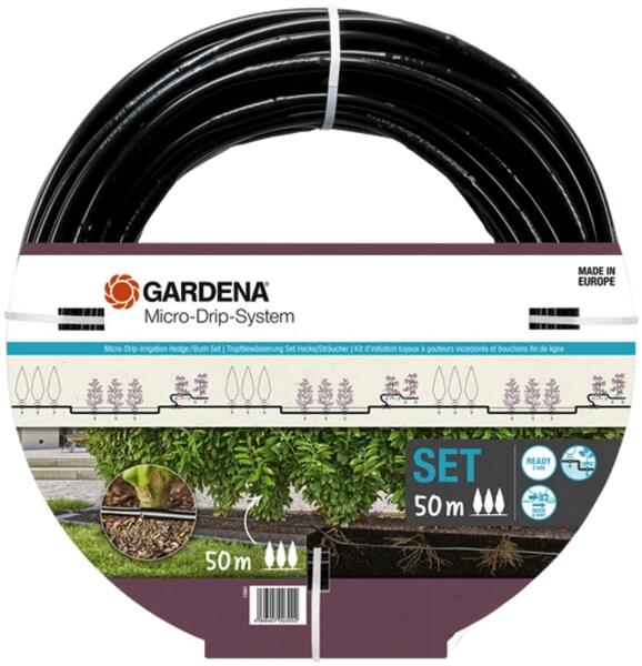 Gardena MDS Csepegtető cső növénysorokhoz – 50 m Mire való ez a készlet?Ez a készlet ideális sövények, bokrok, cserjék vagy más előkert növénysorainak víztakarékos, egyenletes öntözéséhez. Tartalmaz mindent, ami egy 50 méteres növénysor kiépítéséhez kell — így nem kell külön-külön beszerezned az alkatrészeket. Főbb előnyök és jellemzők