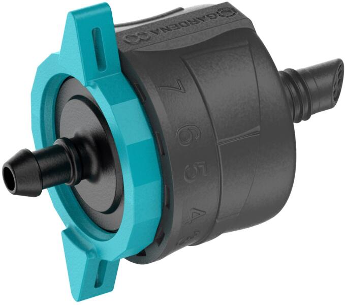 Felhasználási terület: Eltérő vízigényű növényekhez magasságkülönbséggel. Alkalmazható a következőkkel: A 4,6 mm-es (3/16") elosztócső végére vagy közvetlenül a 13 mm-es (1/2") Flex vezetékcsőre rögzítve. Vízátfolyás: 1-8 l/óra között beállítható, nyomástól függetlenül. Nyomáskiegyenlítő az azonos vízleadás érdekében, függetlenül a víznyomástól. Állítható, mennyiségi skálával, öntisztító membrán/labirintus technológia, egyenletes vízelosztás, önzáró a rendszer kikapcsolt állapotában. Tartalom: 5 db végcsepegtető.