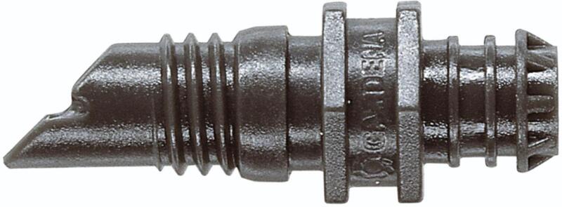 A Gardena Micro-Drip-System részeként szolgáló végcsepegtető tökéletes megoldás pontszerü öntözéshez. Víztakarékos, óránként 4 l vizet öntöz. Ideális a különálló növények vagy hasonló vízigényű növényekből álló hosszabb sorok, például sövény pontszerű öntözésére. Különálló növények öntözéséhez a végcsepegtetőt egy elosztócső (3 / 16 " ) végébe kell belecsavarni. A 13 mm - es (1 / 2 " ) vezetékcső a szerelőeszköz segítségével kilyukasztható, ebbe a lyukba kell beilleszteni a végcsepegtetőt. A tisztítótű segítségével az elszennyeződött csepegtető könnyen kitisztítható. A csomag 25 csepegtetőt és egy tisztítótűt tartalmaz.