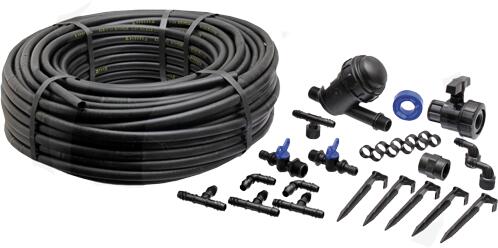 A készlet tartalma: 50 m 16/4/45 csepegtetőcső 15 m polietiléncső 16 mm 5 db cölöp, 3 db T-elosztó 1 dbTömeg: 4,16 kg Vonalkódok: 9010069093104 szűkített T-elosztó, 2 db könyökcső 2 db külső menetes könyökcsonk , 1 db tömlőcsonk 5 db bilincs 16 mm, 1 db golyóscsap 1 db szűrő, 1 tekercs PTFE menettömítő teflonszalag