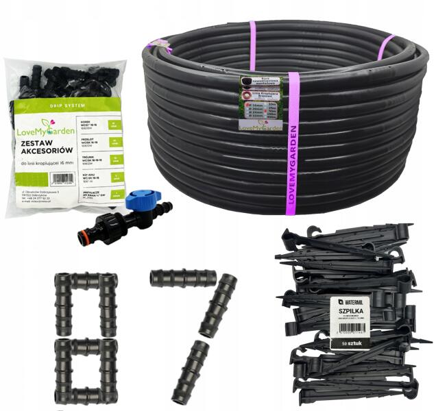 LoveMyGarden Kompenzáció nélküli csepegtetőcső szett 50m 50 csap 87 tartozék (Linia50m/87)