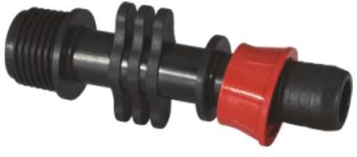 Csepegtetõ szalag idom (rögzítõ gyűrűs) Szorító sapka: Piros Polipropilén Idom test: Fekete Polipropilén Névleges nyomásállóság: 3 bar