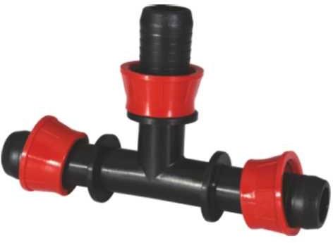 Csepegtetõ szalag idom (rögzítõ gyűrűs) Szorító sapka: Piros Polipropilén Idom test: Fekete Polipropilén Névleges nyomásállóság: 3 bar